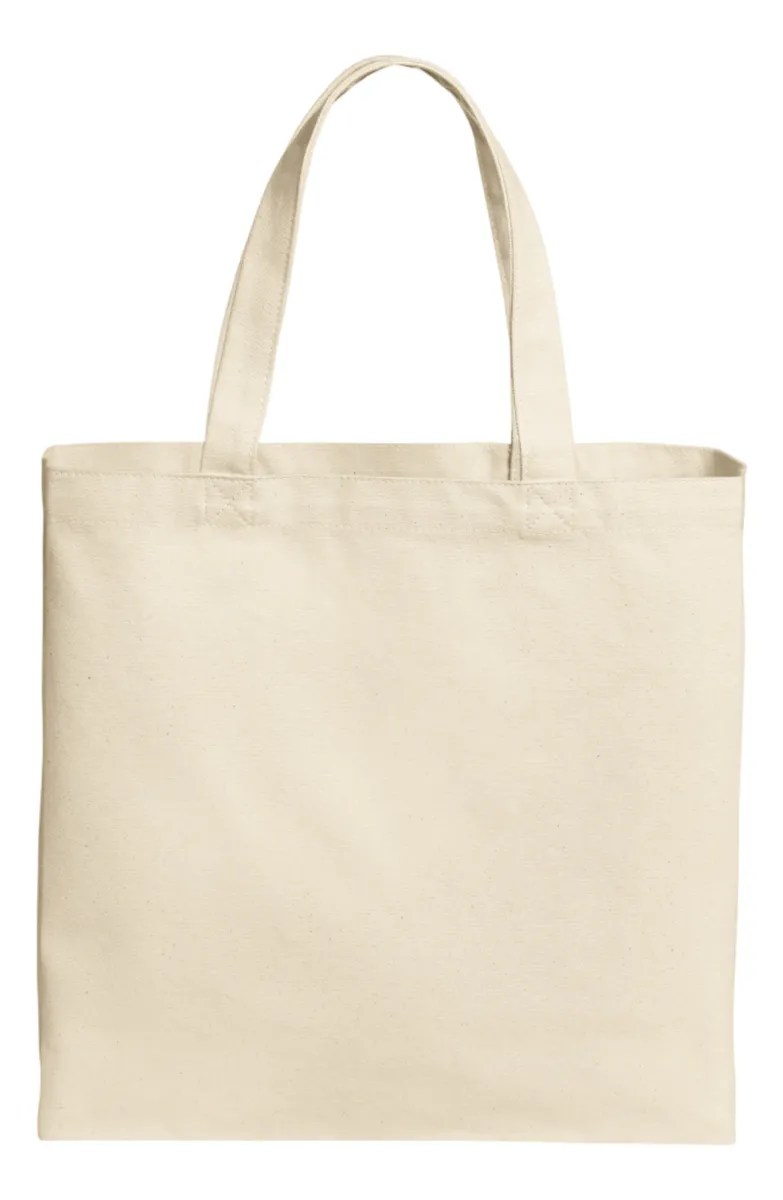 La bolsa es 100% de algodón tanto el lienzo de la bolsa como las asas/manijas que son de cinta hilera